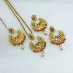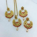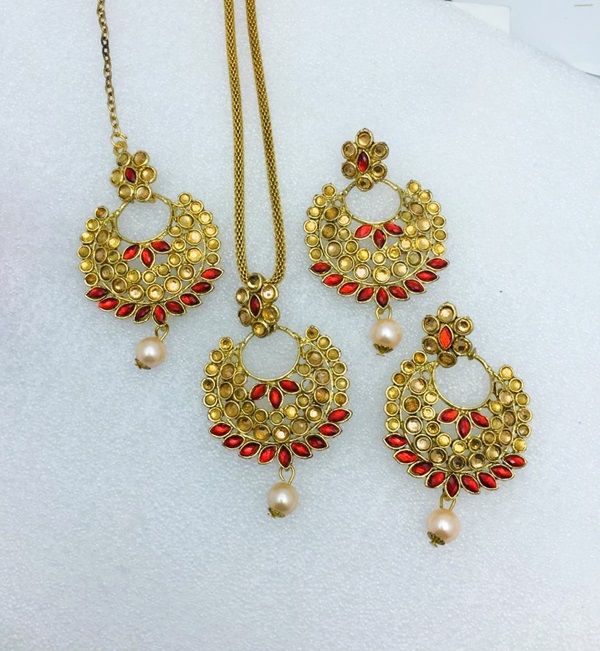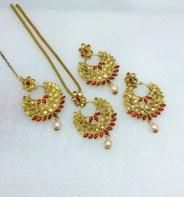 Golden Kundan Necklace Jewelry Set with Earrings and Bindia For Girls