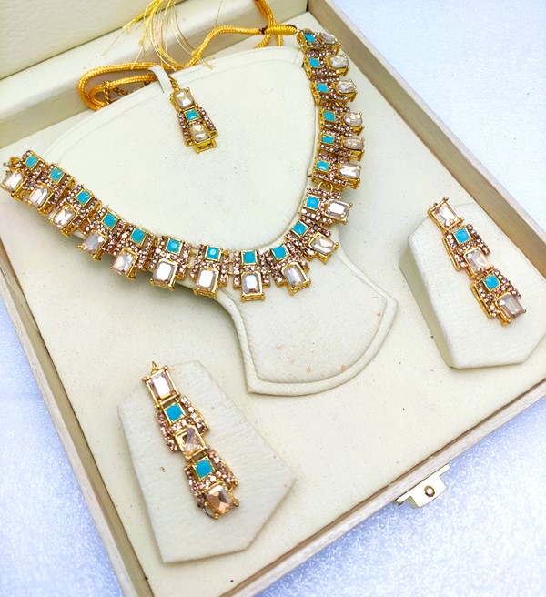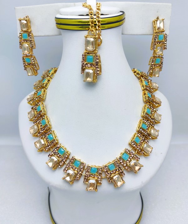Beautiful Zarcon Necklace Jewelry Set With Earring and Matha Patti