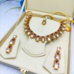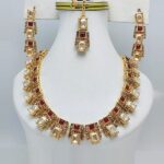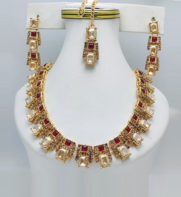 Stylish Maroon Zarcon Necklace Jewelry Set With Earring and Bindia