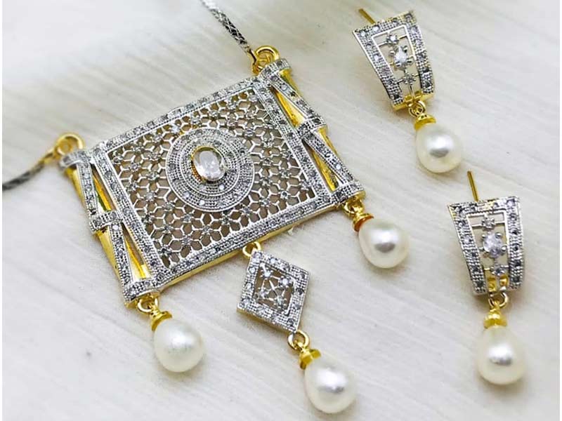 Indian Traditional Zircon Necklace Set With Earrings Set Ethnic Gold Plated Jewelry Women (ZV:1600)