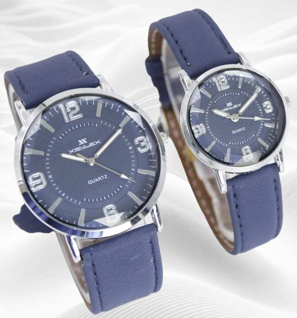Pack of 2 Stylish Rubber Chain Quartz Blue Watch for Couple (ZV:11965)