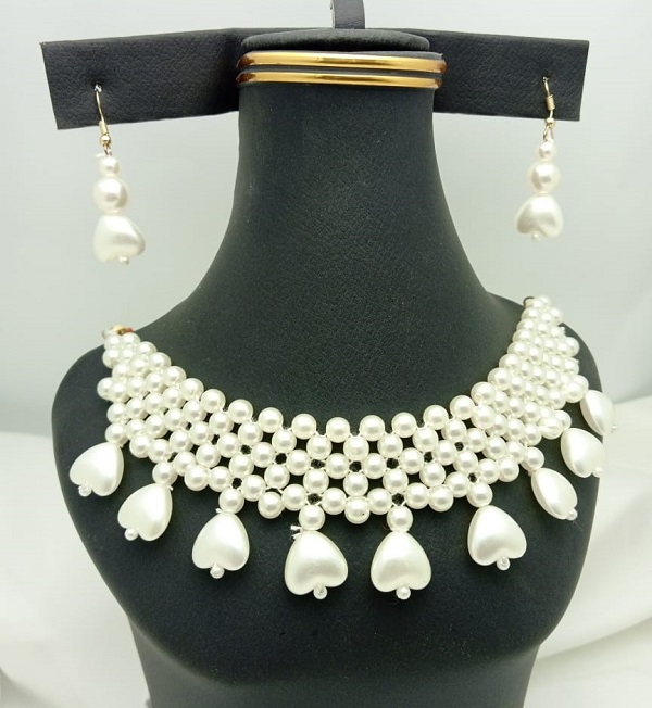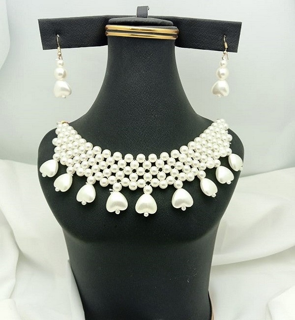 Pearl Heart shape Choker Necklace Set with Earrings For Girls and Women