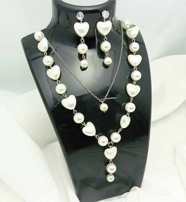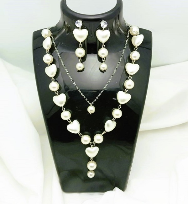 Pearl Heart Shape Double Layered Necklace Set with Earrings For Girls and Women