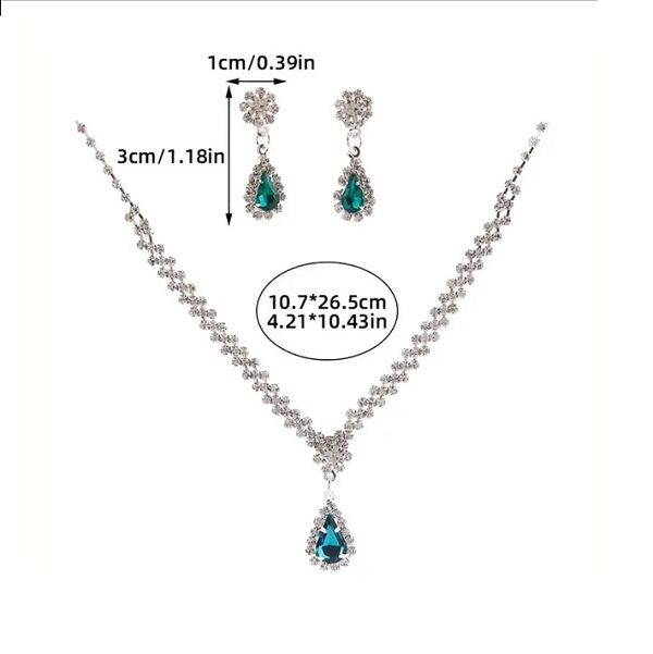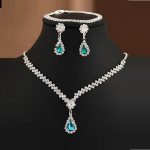 Silver Green Stone Necklace Set With Earrings & Bracelet For Girls
