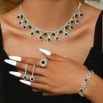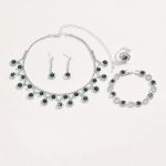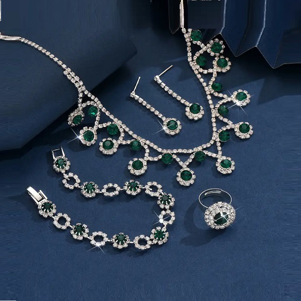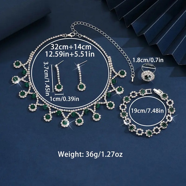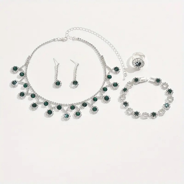 Silver Green Zircon Necklace Combo Set With Earrings, Bracelet & Ring For Women