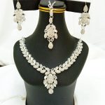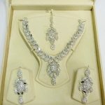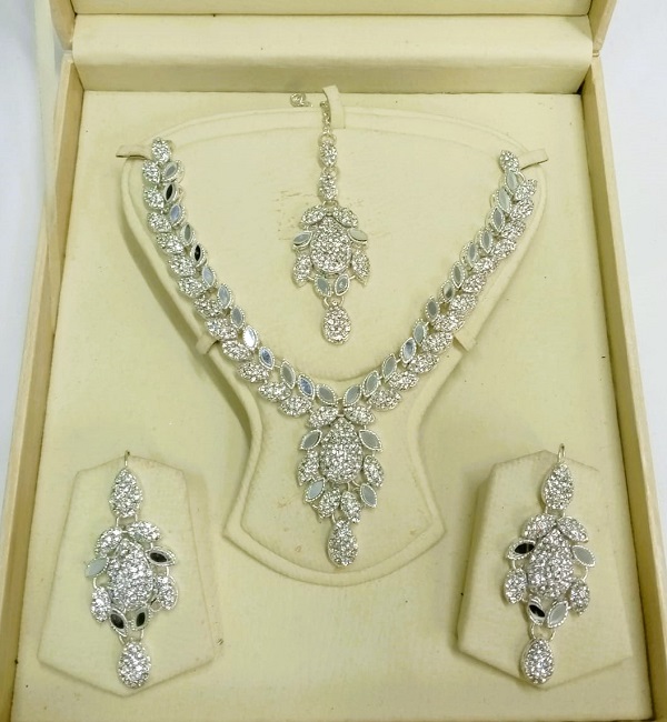 Silver Zircon Sheesha Necklace Set with Earrings and Bindia For Women