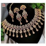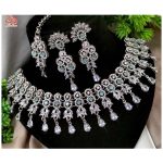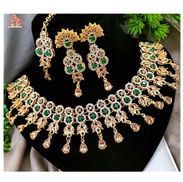 Stylish Heavy Zircon Wedding Choker Necklace Set with Earrings and Tikka For Women