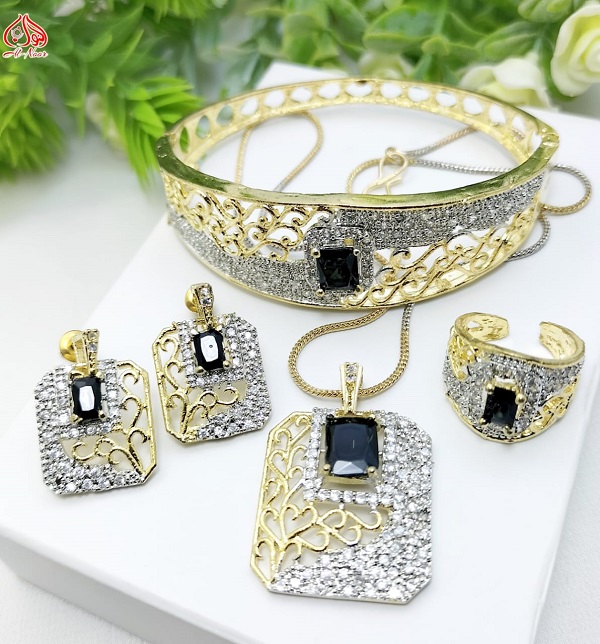 Stylish Indian Black AD Zircon Combo Set For Ladies