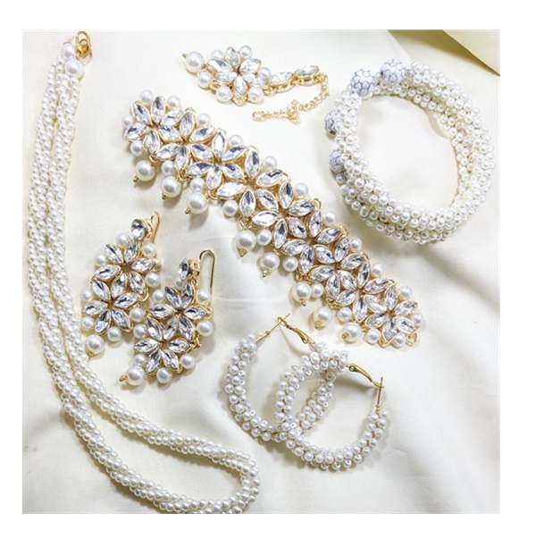2) Mala Pearl Jewelry Set : Pearl Mala, Earrings and Kangan