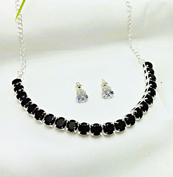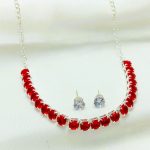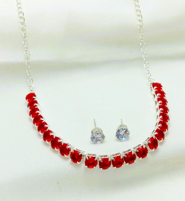 Stylish Maroon Silver AD Zircon Necklace Set With Tops For Girls