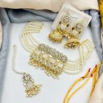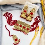 Includes matching Choker, Tikka, and earrings for a coordinated bridal look, ensuring harmony in style.