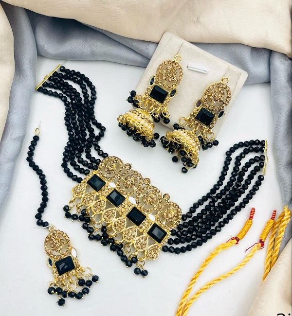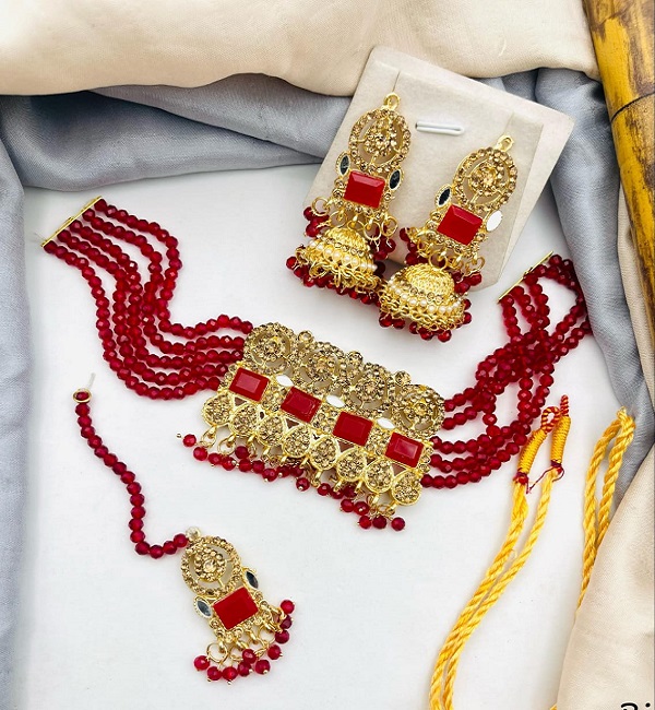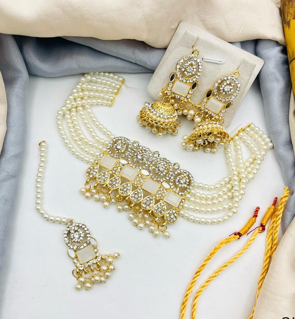 Stylish Wedding Stone Choker Set with jhumki and Bindia For Women