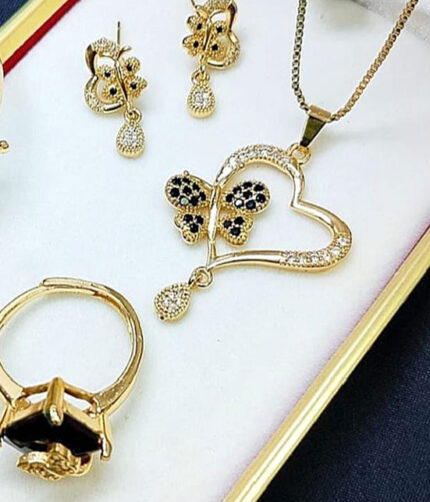Stylish Zircon Black Chain Locket Jewelry Set For Girls