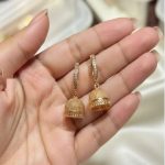 Enhance your traditional look with these beautifully gold plated jhumka drop earrings designed for weddings, festive events, and party wear. Featuring an intricate textured dome design with a secure hoop closure, these lightweight traditional earrings offer both comfort and elegance. Perfect for bridal jewelry, mehndi functions, Eid, and formal occasions, these classic jhumkas add timeless charm to any outfit.