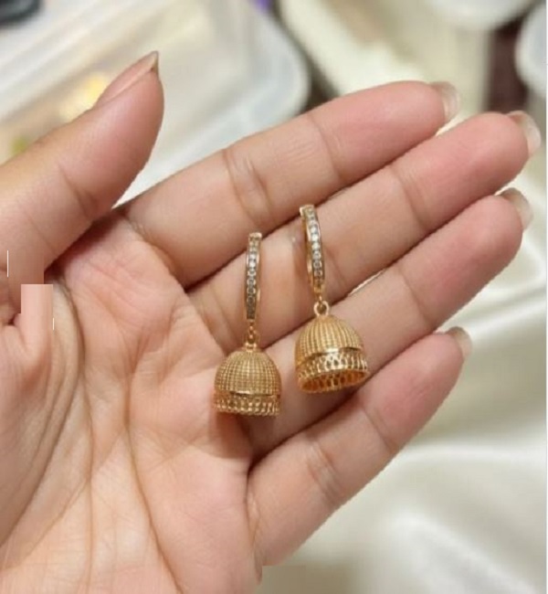 Traditional Pakistani Elegant Gold Plated Zircon Jhumka Drop Earrings For Women
