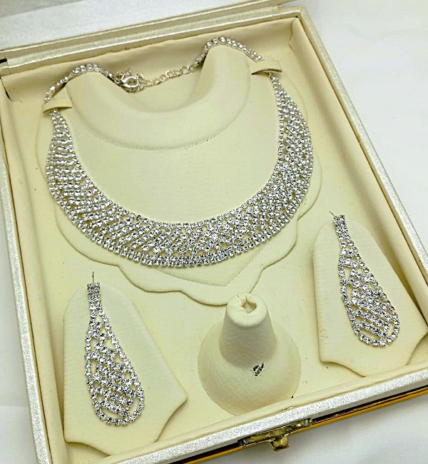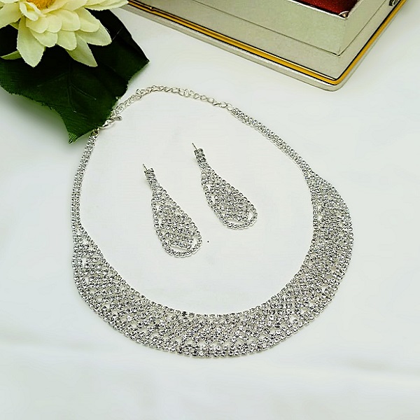Trending Silver AD Zircon Necklace Set with Earrings For Women