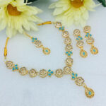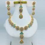 White Zircon Ferozi Stone Fashion Jewelry Necklace Set with Earrings and Teeka for Women and Girls