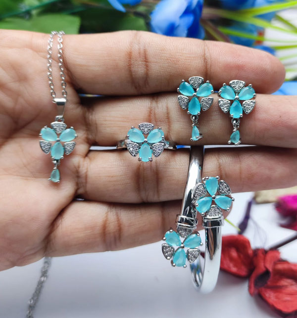 Be the first to review “Zircon Silver Combo Set Locket Chain Bracelet Earring & Ring (ZV:15193)” Cancel reply
