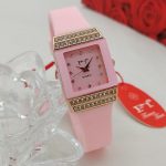 Zircon Square Shaped Ladies Watch with Rubber Strap